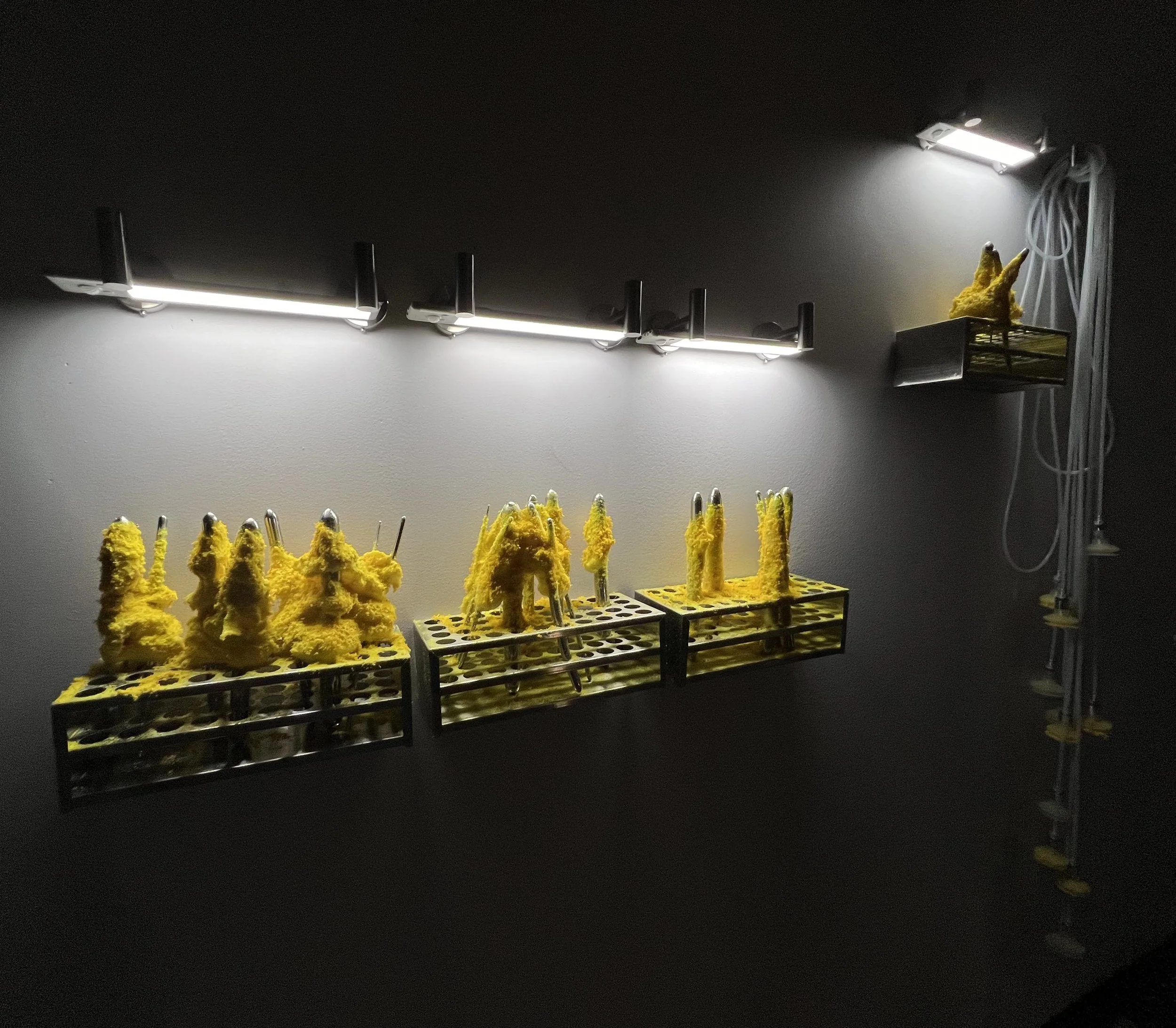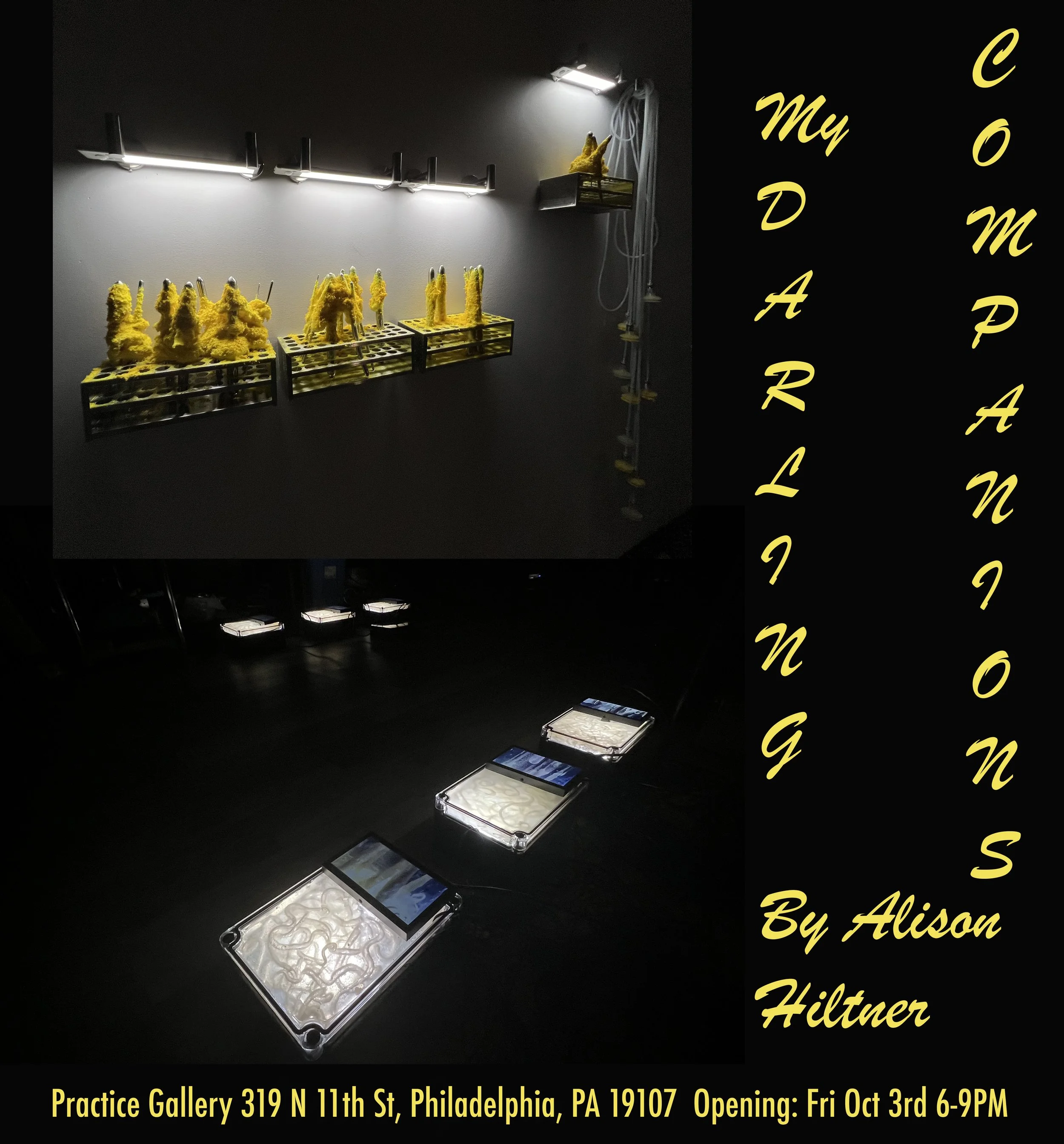 Practice Gallery is pleased to present My Darling Companions, an exhibition of new work by Minnesota-based artist Alison Hiltner. Hiltner’s mesmerizing multi-media installation will inhabit Practice Gallery from October 3 through October 26, with a reception for the artist on First Friday, October 3 from 6:00-9:00 pm. Hiltner’s forms draw from the structures and systems of the natural world, creating an uncanny sci-fi resonance between the paths of earthworms and an abundant, glowing pollen towers.