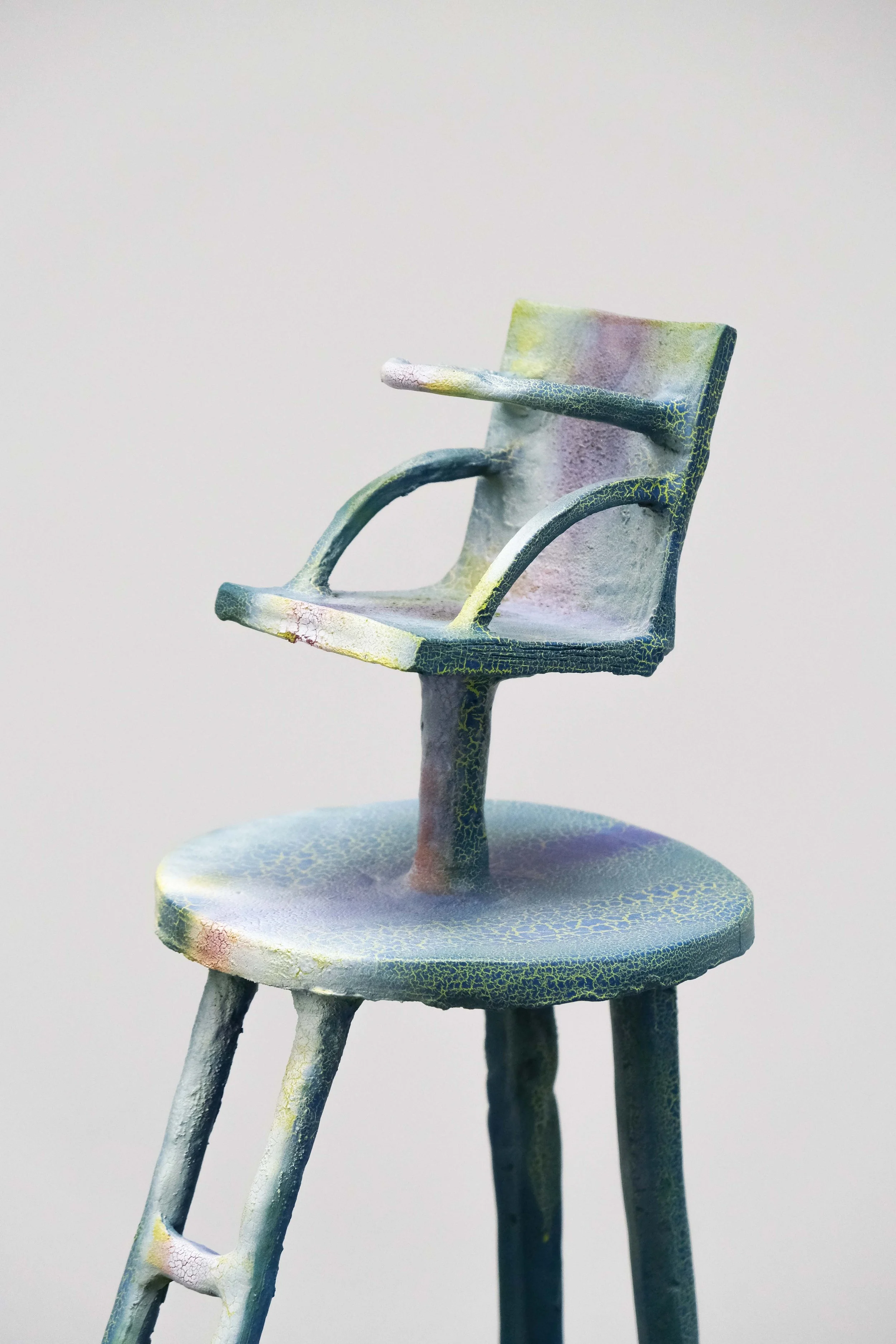 Shay Myerson, benchmaster, 2025. Ceramic, paint. 4 ft x 4 ft x 4 ft.